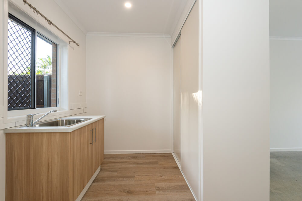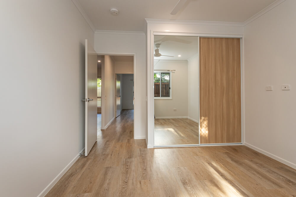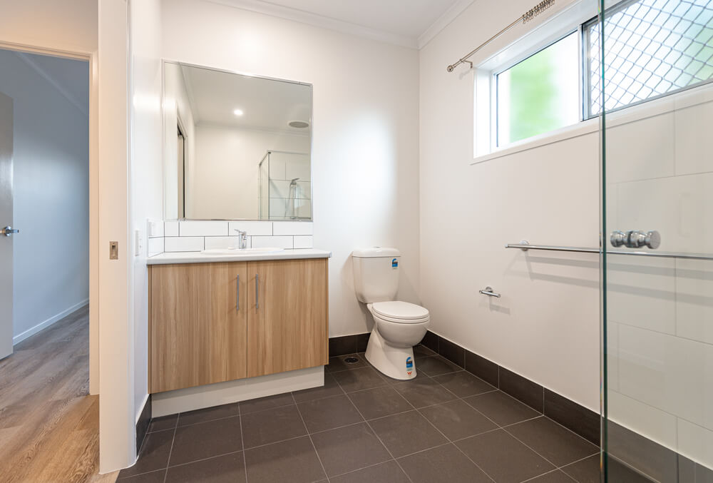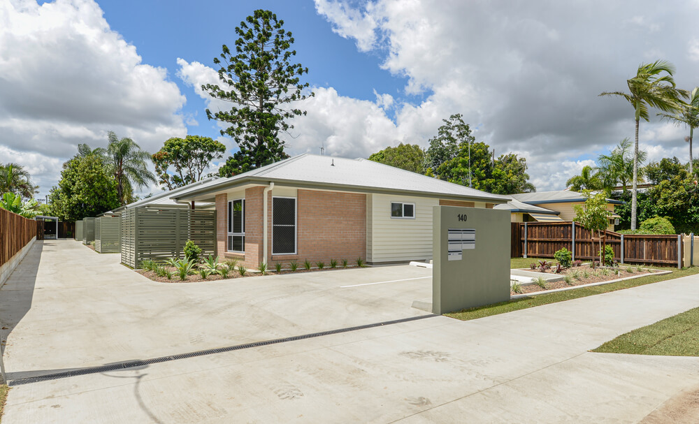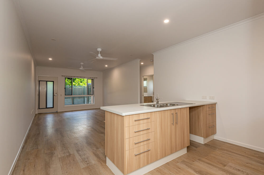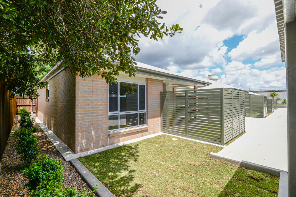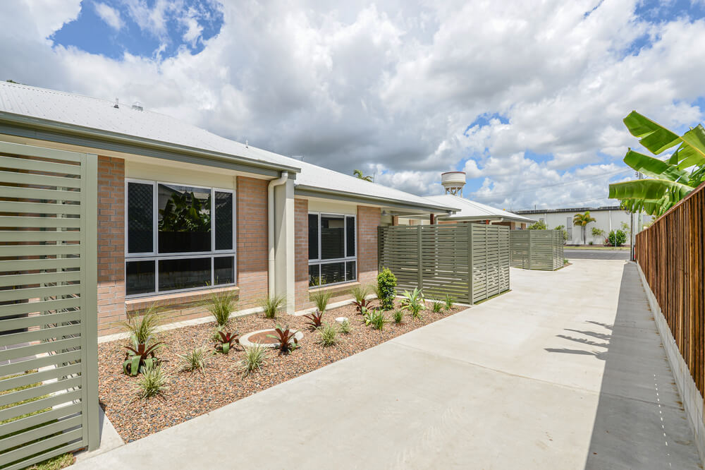 Masterfully designed for Adaptable Living these homes are constructed of Face Brick and Linea Board cladding, Steel Frame and Colorbond roof sheeting. Each unit consists of 2 bedrooms, a bathroom, kitchen, laundry, dining and living room with single lock up garage. Enclosed alfresco areas, fully screened with planted garden beds are situated at the entry of each unit. Laminated joinery and timber-look vinyl plank flooring offer a modern and affordable low-maintenance lifestyle for their residents.