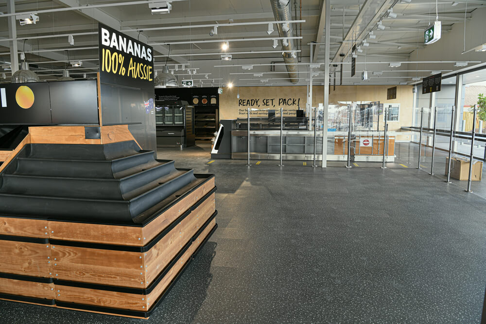 Once construction began, progress was quick with pre-cast concrete panels forming the external walls. The 125mm thick insulated sandwich panel roof system, Bondor Solarspan, also forms the internal ceiling of the store resulting in exposed services being run internally.