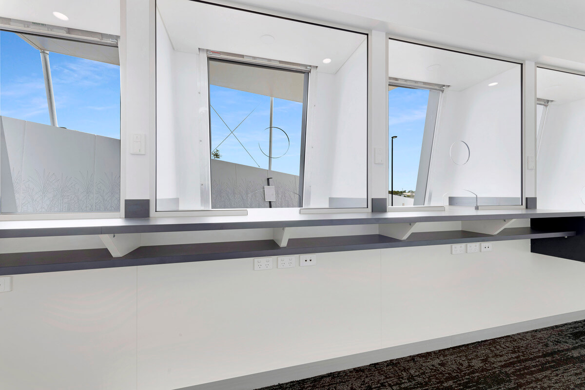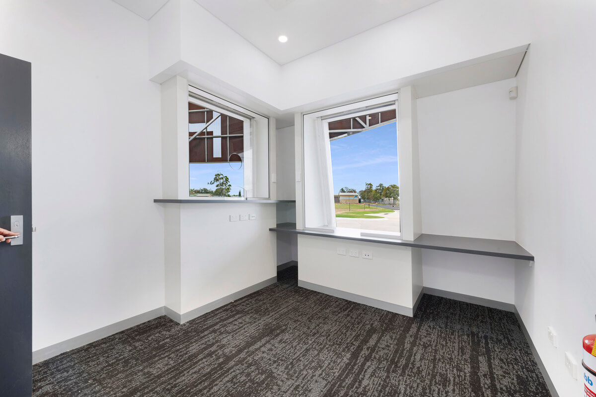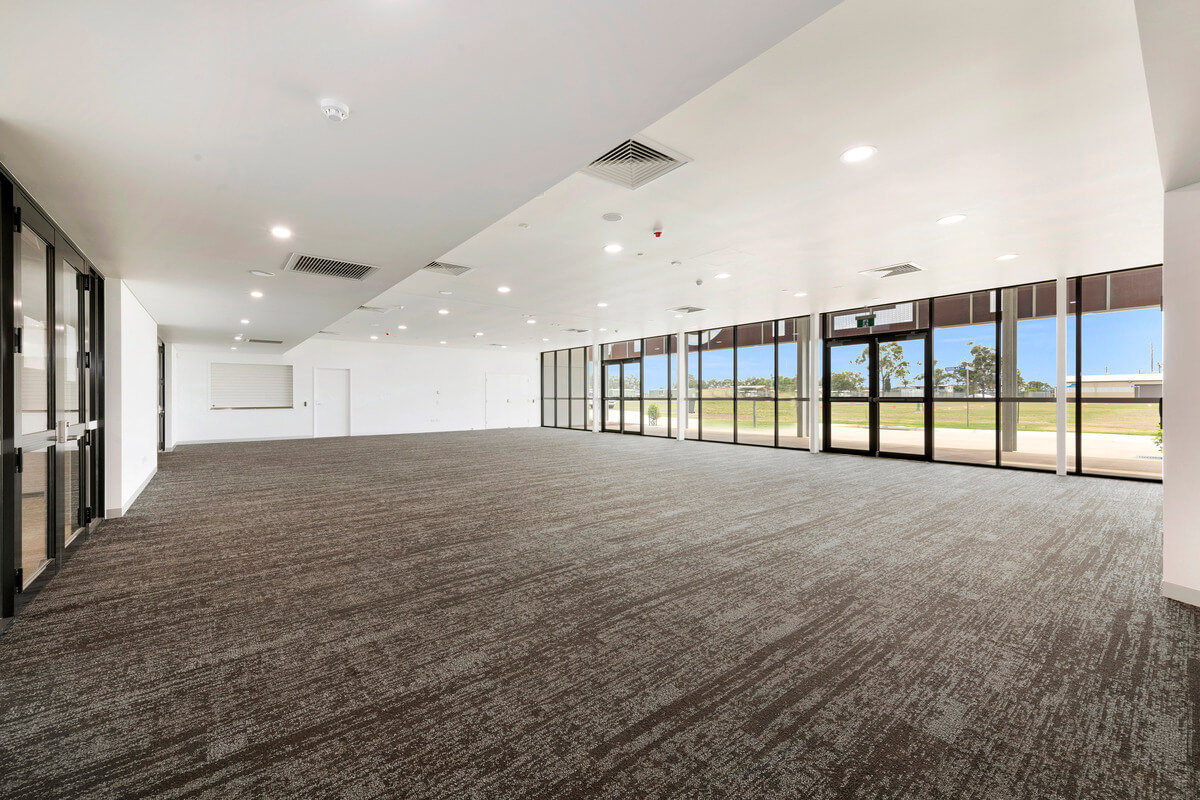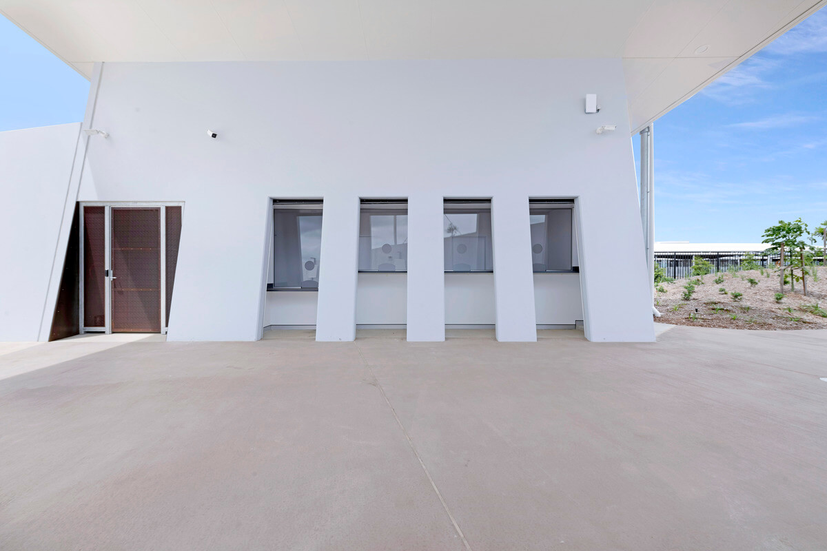 The ceiling of the Main Pavilion which was formally a Colorbond-clad steel framed structure, has been lined with perforated custom orb colorbond sheeting. A new concrete slab was poured, increasing the floor height by 200mm. Internally, the walls were lined with Cemintel Territory cladding, new external colorbond wall cladding was installed, and aluminium joinery was introduced to some of the existing openings