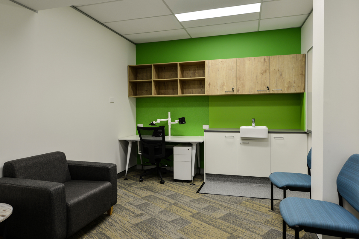 Over a six week period, 450m² of ground floor office space was transformed into highly functional health services facility. The layout provides for the diverse services of GPs, psychologists, social, youth, alcohol and other drug workers.