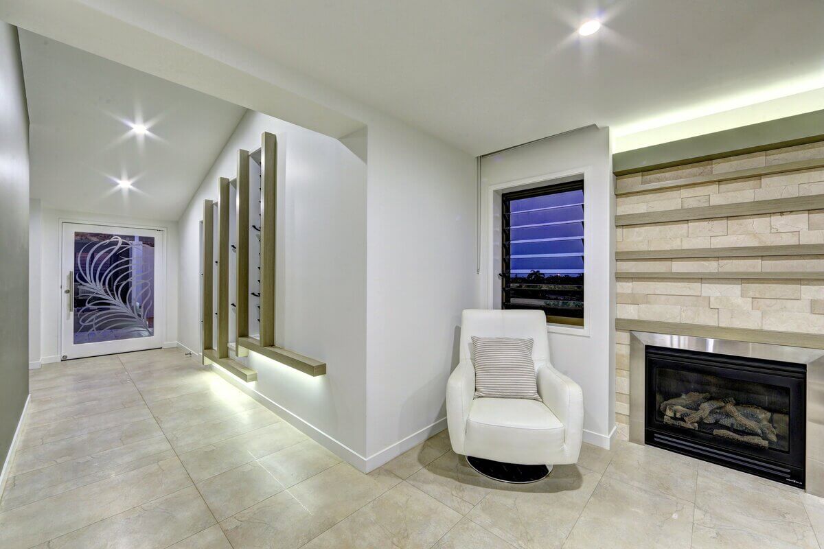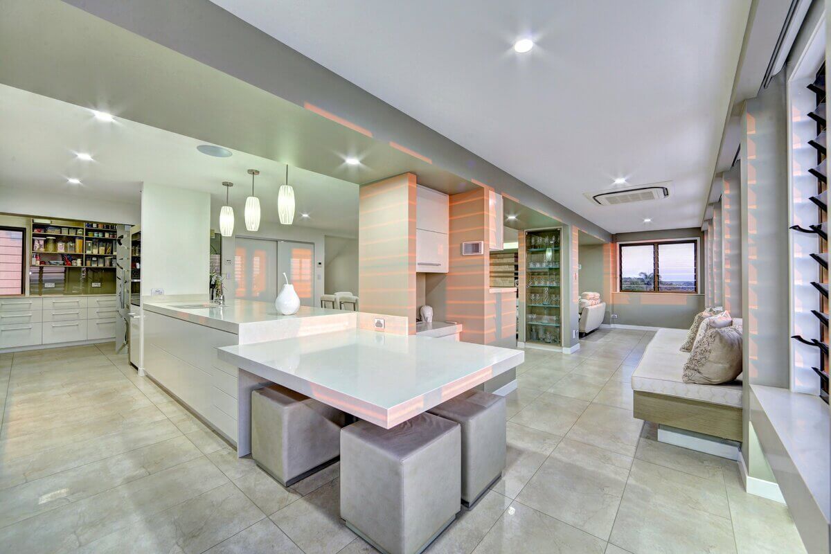 Internally, no page was left unturned. The builder has incorporated recessed pelmets over windows to hide blinds from view when not in use, and pockets in walls to conceal curtains when open. The neutral colour scheme exudes a calm, tranquil ambience to compliment the ever-changing views of the farmlands below. Feature lighting using LED strip and cabinet downlights adds to the 'WOW' factor of this home.