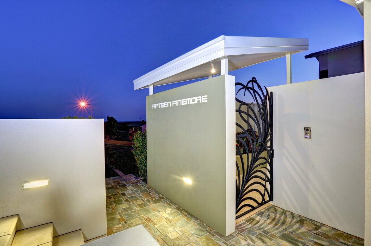 The owner used a superb wrought iron gate on the enclosed courtyard at the front of the house which blends beautifully with the surrounding landscape of cane paddocks. This theme was carried throughout the house with the design being sandblasted on the glass front door and sliding door to the Butler Pantry. The street appeal of the house has been enhanced by the use of numerous external cladding materials, creative paintwork and extensive landscaping to the front of the house.