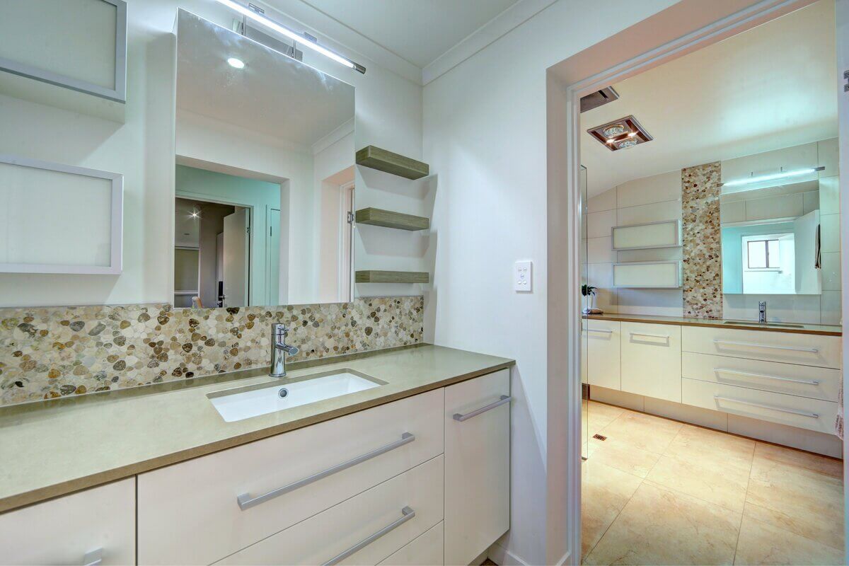 The owners decided to extend the southern end of the house to create more room in both the main bedroom and lounge room. Some block piers and glass sliding doors separating the main living area from the open verandah were removed and the verandah enclosed and exteded to create more usable internal living space with an open plan feel. The verandahs adjacent the bedrooms on the third floor of the house were enclosed with the Master Bedroom verandah being transformed into an ensuite, and the verandahs adjacent rooms 2 and 3 being incorporated into the bedrooms making way for spacious study areas for their teenage children.