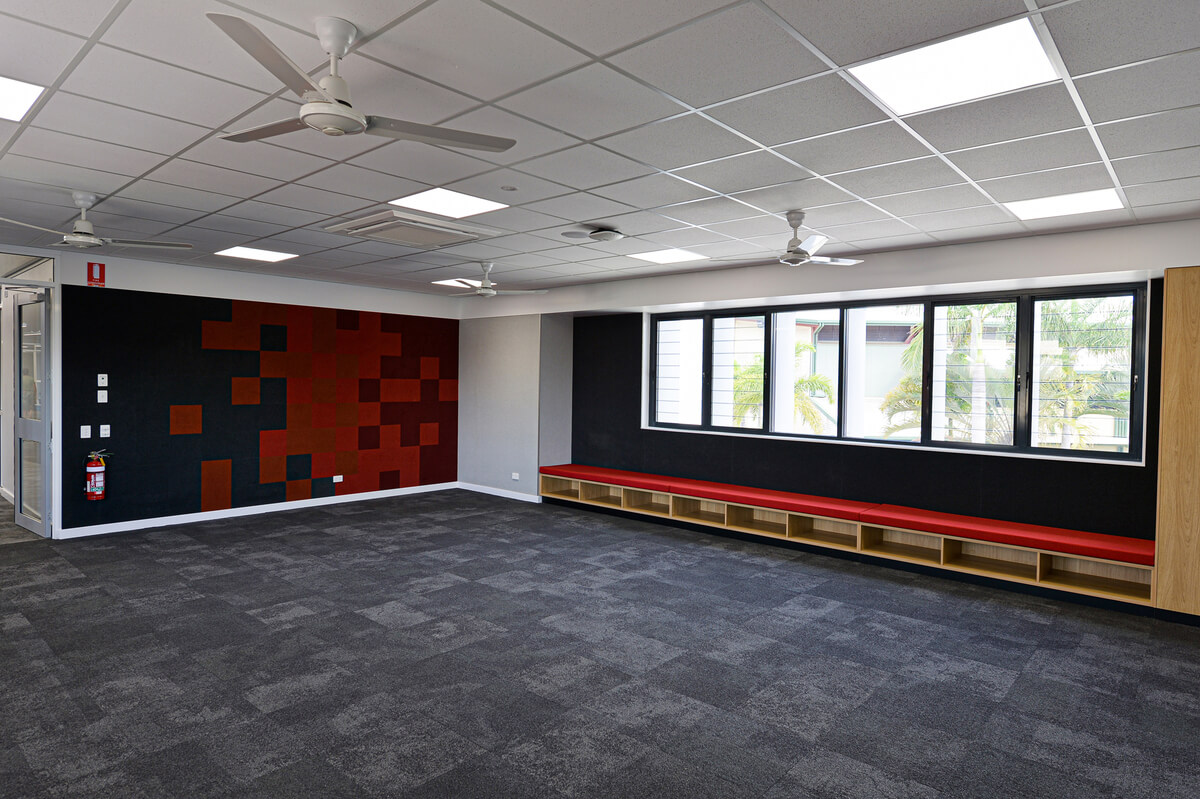 Electrically operated high-level louvres facilitate light and ventilation throughout the building. A combination of ducted, split system and cassette-style air-conditioning is used throughout the building. LED lighting is used throughout with a combination of downlights, wall mounted lights, strip pendant lights and feature pendant lighting being utilised.